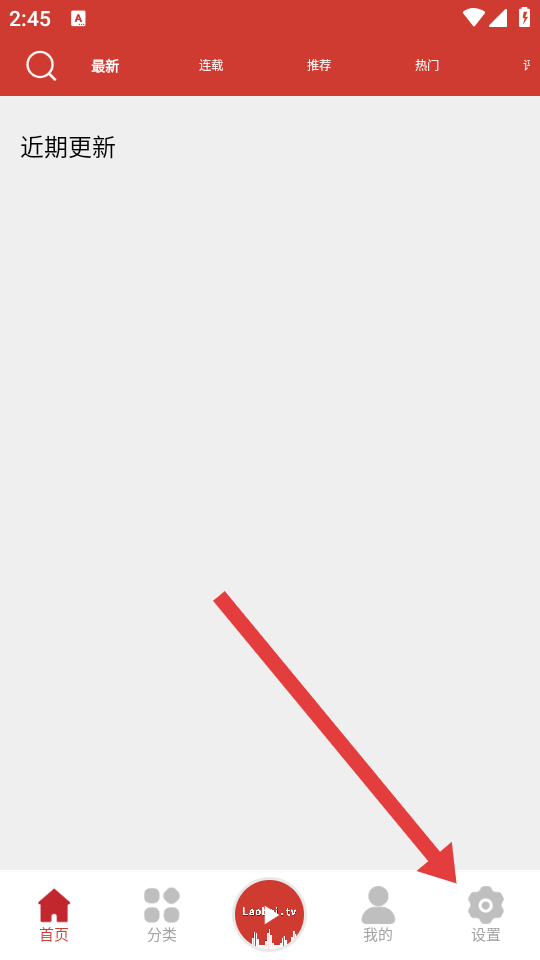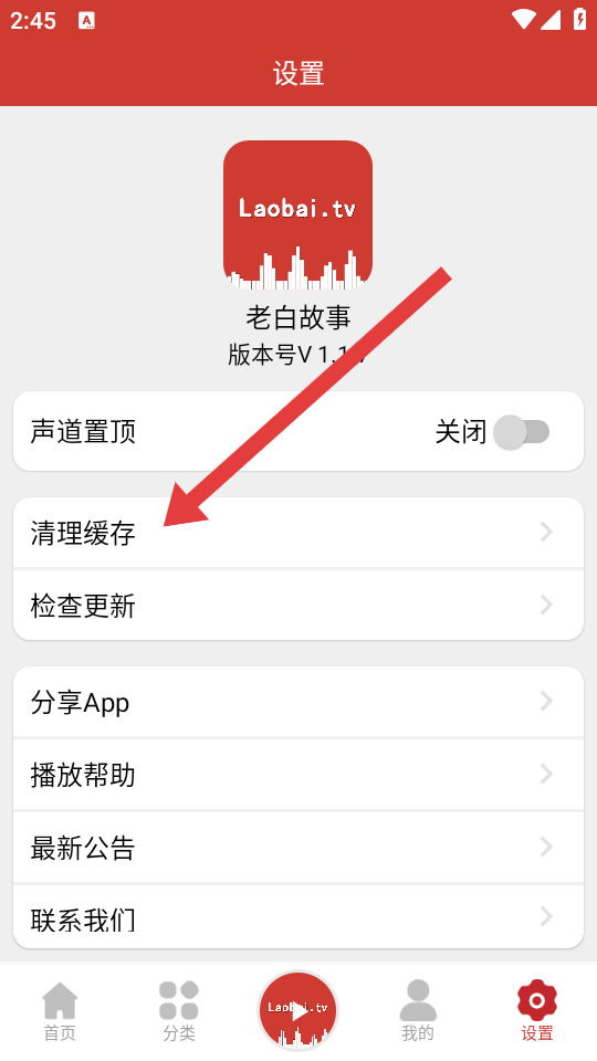 1、打開老白故事聽書APP,點擊界面右下角的設置圖標,進入設置頁面。