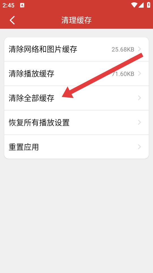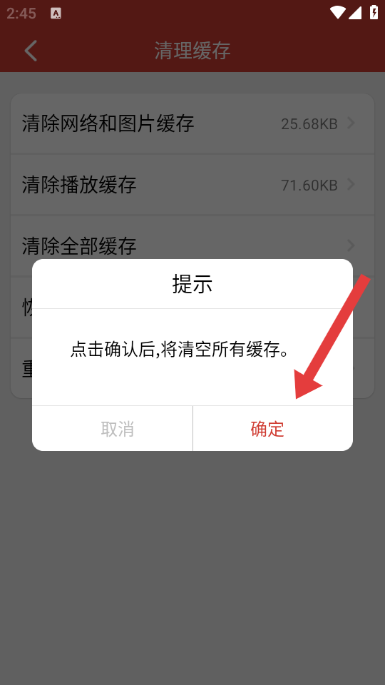 3、在清理緩存界面里,點擊清除全部緩存選項,觸發(fā)緩存清理的確認提示。