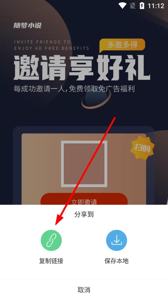 3、點(diǎn)擊后會(huì)彈出分享選項(xiàng),選擇復(fù)制鏈接,將鏈接分享給他人,成功邀請(qǐng)即可獲得免廣告福利 。