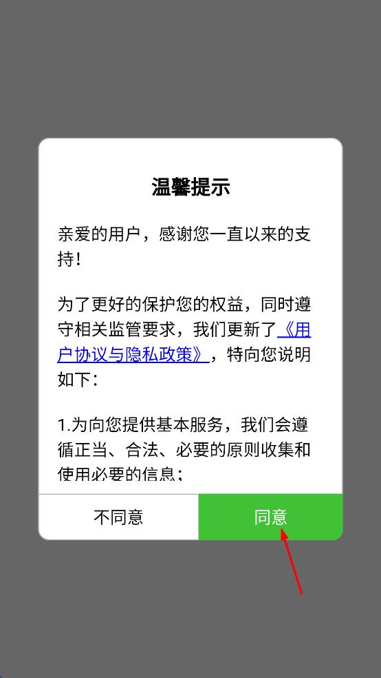 1、打開貴州人社APP,看到溫馨提示彈窗,仔細閱讀內(nèi)容后,點擊同意,進入APP主界面。