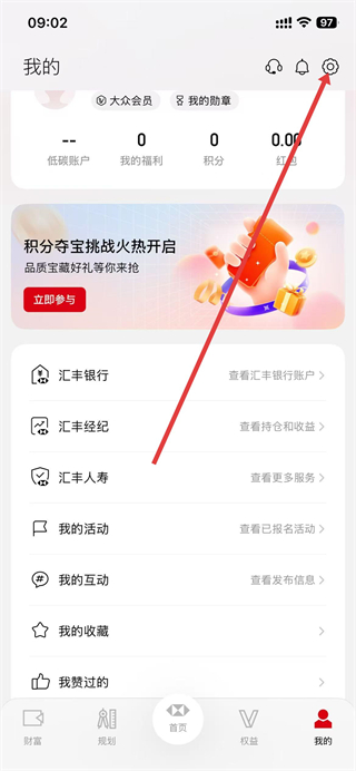 1、打開匯豐匯選app,點擊底部導航欄我的選項。