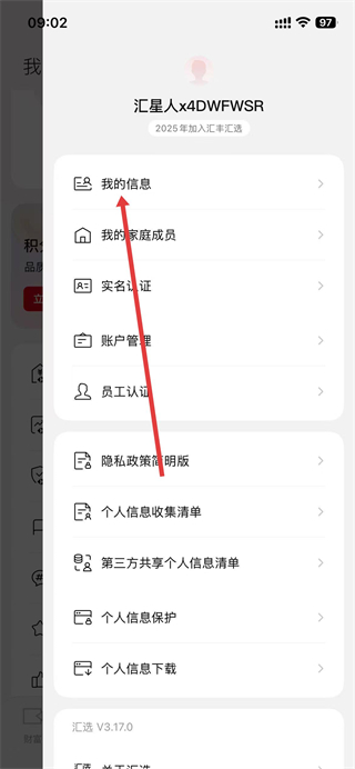 3、在彈出的菜單中,找到并點擊我的信息選項。