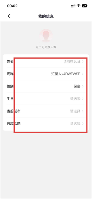 4、點擊需要更新的身份信息選項,即可進行更改。