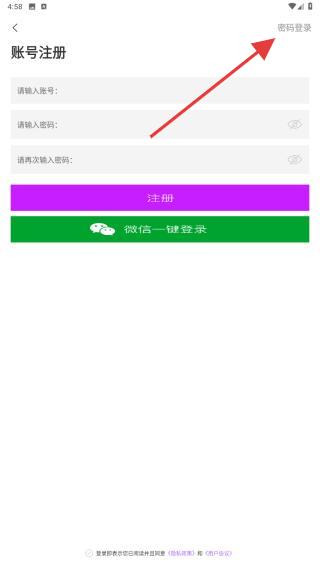 3、進入到登錄的界面內(nèi),點擊右上角密碼登錄的按鈕。