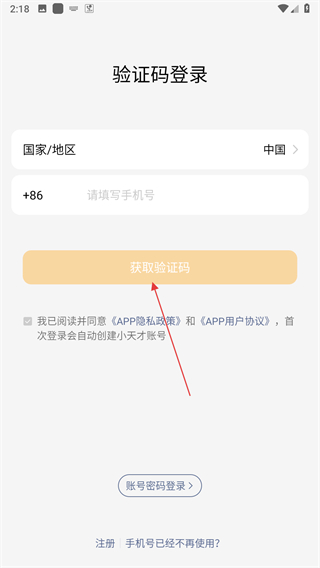 2、輸入手機號,點擊獲取驗證碼按鈕。