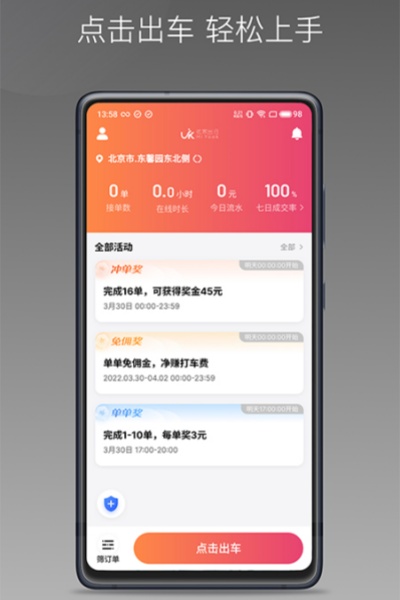 用于接聽花小豬渠道訂單專用,車主們可以通過下載優(yōu)客出行車主端自由接單,沒有在線時長考核,24小時隨時都能接聽訂單。