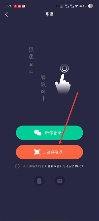 3、在登錄界面里,選擇二維碼登錄選項(xiàng),觸發(fā)我的登錄綁定碼彈窗。