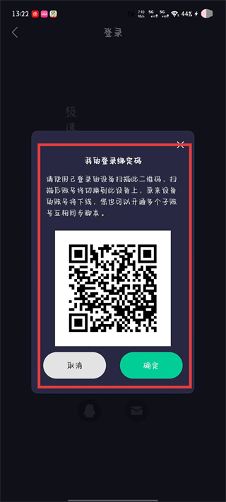4、使用已登錄賬號(hào)的設(shè)備掃描彈窗中的二維碼,掃描后點(diǎn)擊確定。