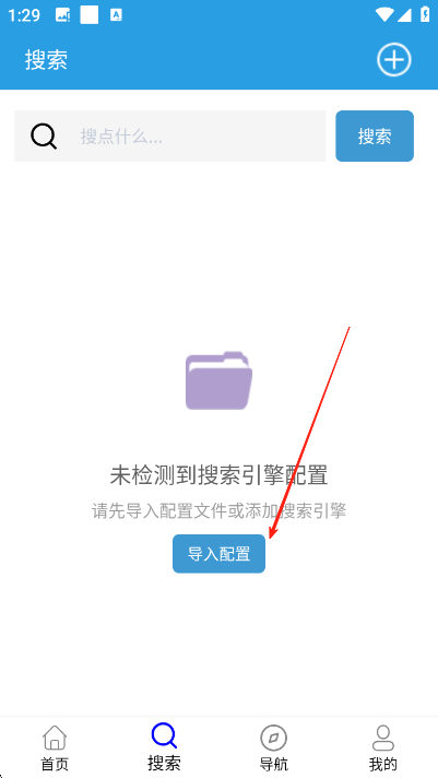 1、打開(kāi)快鳥(niǎo)搜索進(jìn)入搜索界面,若看到未檢測(cè)到搜索引擎配置,請(qǐng)先導(dǎo)入配置文件或添加搜索引擎提示,點(diǎn)擊下方藍(lán)色的導(dǎo)入配置按鈕,準(zhǔn)備進(jìn)行搜索引擎配置導(dǎo)入操作。
