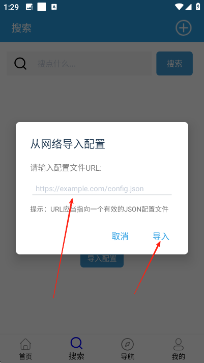 3、若選擇從網(wǎng)絡(luò)導(dǎo)入,在彈出的從網(wǎng)絡(luò)導(dǎo)入配置窗口中,在輸入框里準(zhǔn)確輸入有效的配置文件URL,URL應(yīng)指向一個(gè)有效的JSON配置文件,確認(rèn)輸入無(wú)誤后點(diǎn)擊導(dǎo)入按鈕。