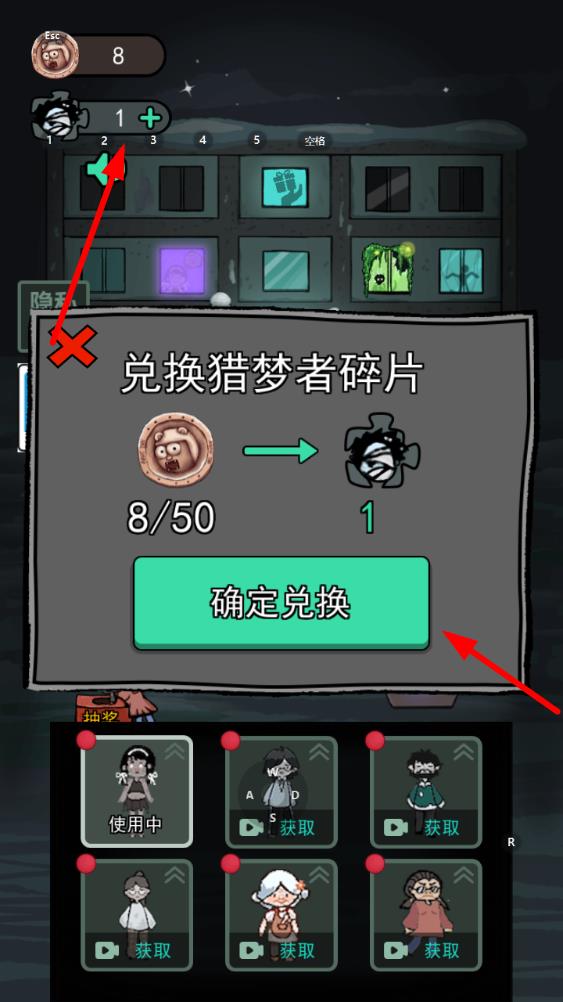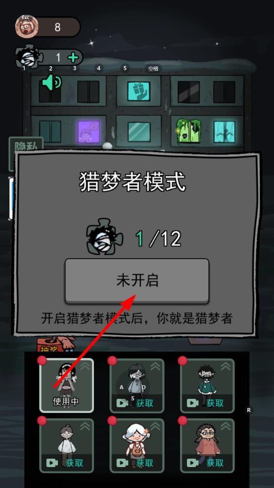 3、當(dāng)擁有足夠的獵夢者碎片達(dá)到,點(diǎn)擊獵夢者頭像圖標(biāo)兌換獵夢者碎片,完成兌換后即可開啟獵夢者模式,在下次游戲中就能選擇成為獵夢者。