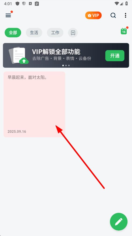 1、打開備忘錄隨手記app,在主界面點擊想要添加錄音的筆記,進入筆記編輯頁面。