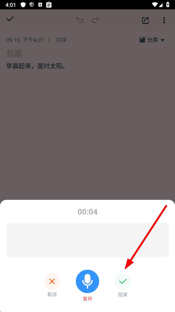 5、錄音完成后,點擊結(jié)束按鈕完成錄音。