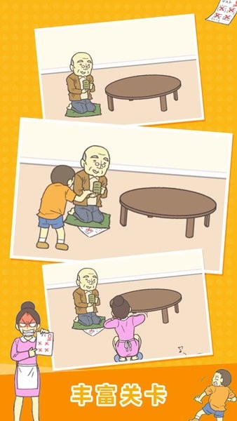 0分保衛(wèi)戰(zhàn)是很有創(chuàng)意的一個趣味腦洞闖關(guān)手游,游戲畫風十分小清新,看上去就像手繪漫畫,你唯一的任務(wù)就是幫助小孩把零分試卷藏起來,一旦被老爸老媽找到的話你就免不了一頓打,玩法很有代入感,喜歡的快來試試吧!