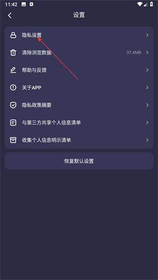3、在設(shè)置頁(yè)面中,點(diǎn)擊隱私設(shè)置選項(xiàng),進(jìn)入隱私設(shè)置頁(yè)面。