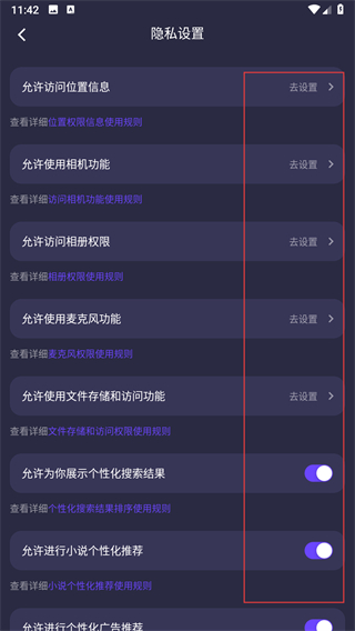 4、進(jìn)入隱私設(shè)置頁(yè)面后,對(duì)相應(yīng)的隱私權(quán)限進(jìn)行更改設(shè)置。