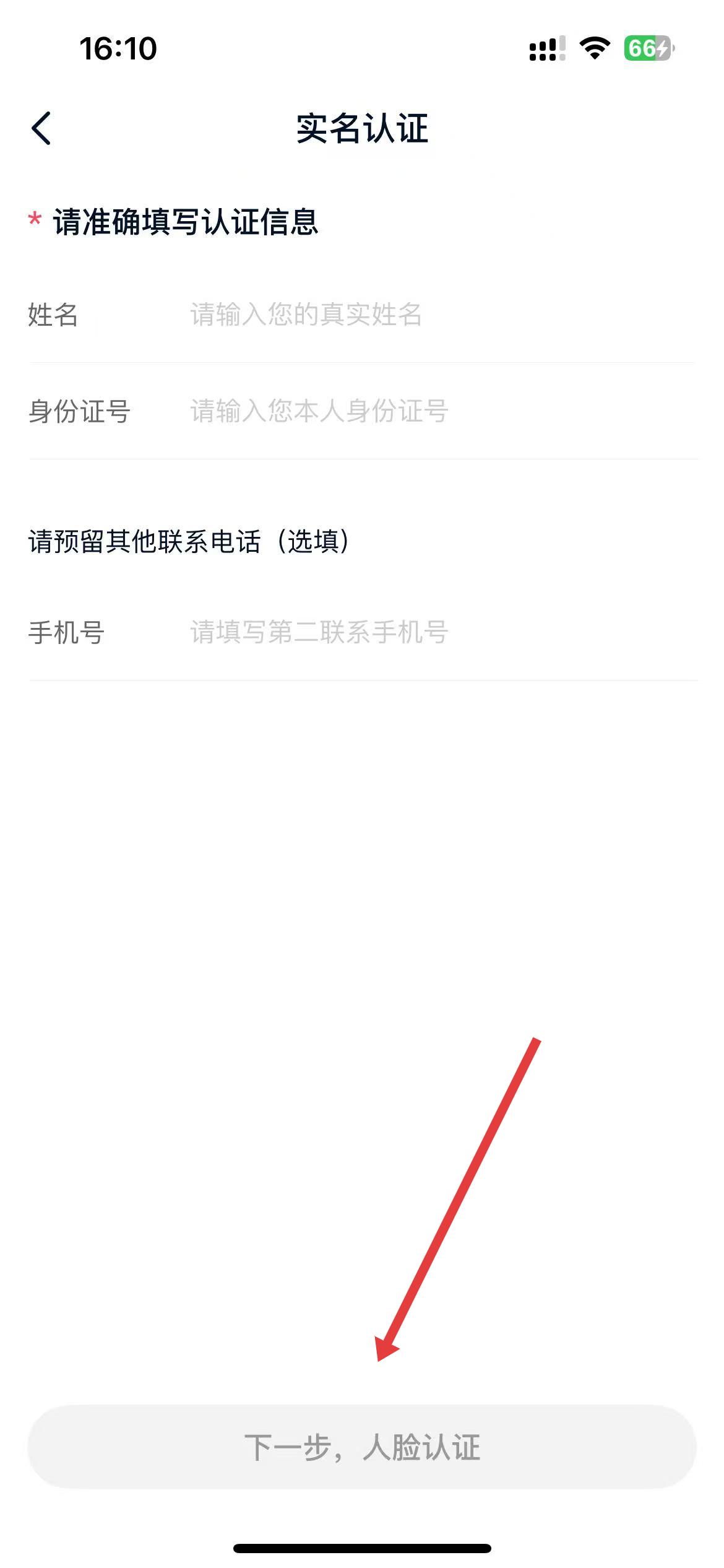 5、準確填寫姓名、身份證號等信息后,點擊下一步,人臉認證,按提示完成人臉認證,即可完成實名認證。