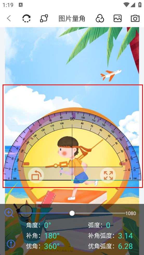 4、進(jìn)入圖片量角頁(yè)面,即可使用所選量角器對(duì)圖片進(jìn)行角度測(cè)量。