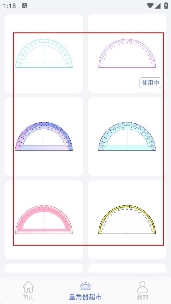 2、在量角器超市頁(yè)面,選擇所需樣式的量角器。