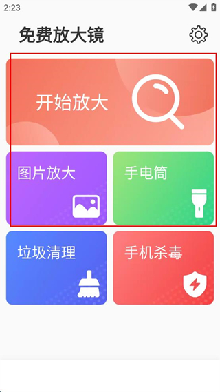 1、打開免費(fèi)放大鏡APP,點(diǎn)擊“圖片放大”選項(xiàng)。