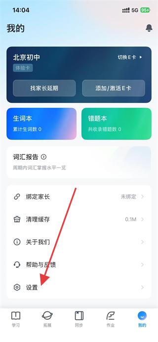 1、打開(kāi)e聽(tīng)說(shuō)中學(xué)app,點(diǎn)擊底部導(dǎo)航欄的我的選項(xiàng)。