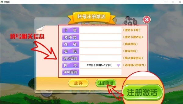 1、先打開99圍棋,在登錄界面點(diǎn)擊“注冊(cè)激活”按鈕;