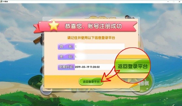 3、出現(xiàn)注冊(cè)成功界面,點(diǎn)擊“返回登錄平臺(tái)”;
