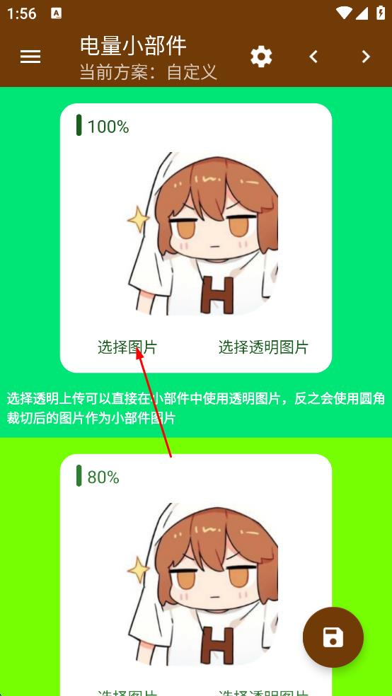 1、打開電量小部件應(yīng)用,點(diǎn)擊100%電量區(qū)域“選擇圖片”,進(jìn)入文件選擇頁,瀏覽最近文件列表。