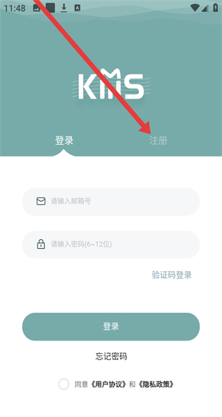 3、在登錄注冊選擇頁面點擊“注冊”,進入注冊頁面。