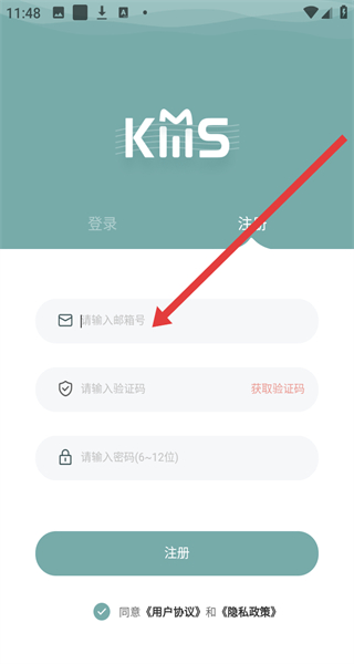 4、在注冊頁面輸入郵箱編號,點擊“獲取驗證碼”并輸入,設置密碼,點擊“注冊”,完成賬號注冊操作。