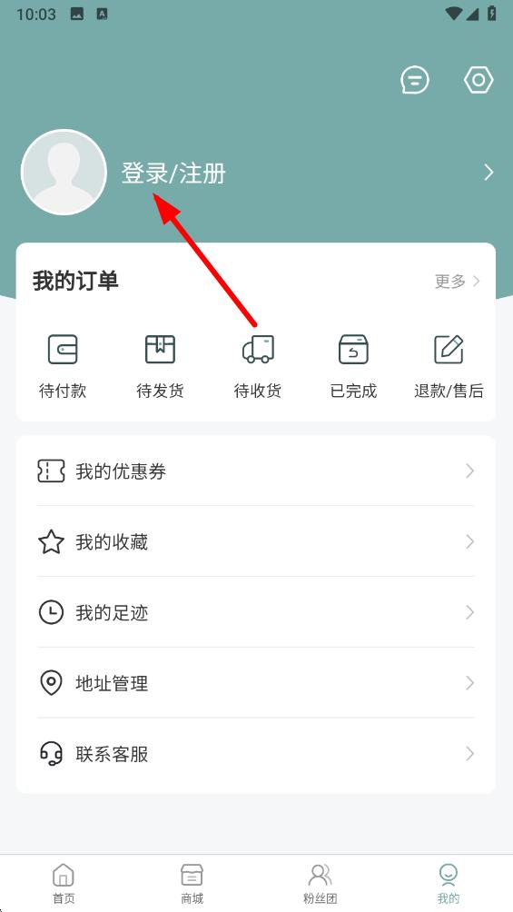1、打開app點擊底部導航欄中的我的選項進入個人相關頁面,點擊登錄注冊的按鈕。
