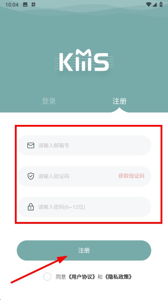 3、在注冊頁面先勾選同意協(xié)議,然后依次輸入郵箱號,并輸入驗證碼后設置密碼,最后點擊注冊按鈕即可完成注冊。