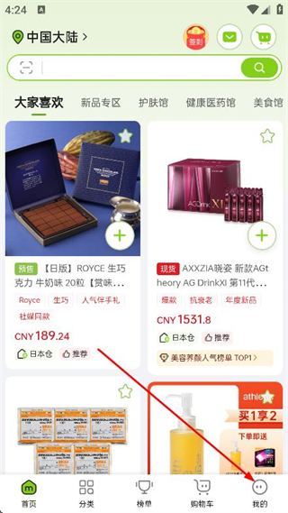 1、打開日本購物平臺,點(diǎn)擊底部導(dǎo)航欄我的選項(xiàng)。