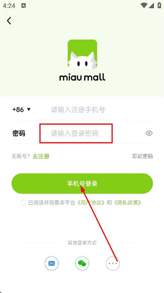 4、輸入密碼,點(diǎn)擊手機(jī)號登錄,即可完成登錄操作。