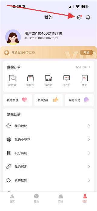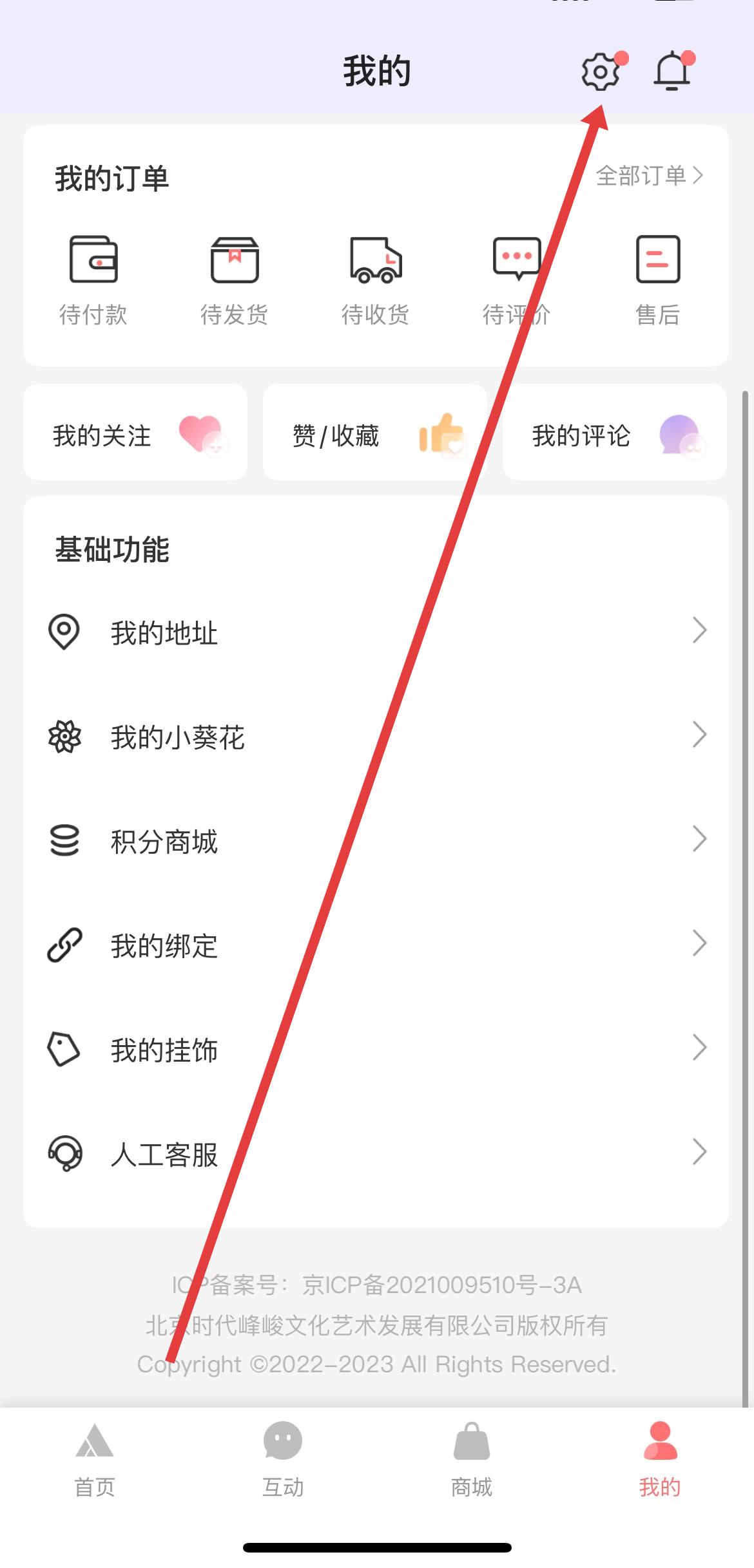 2、在個人頁面中點擊右上角設(shè)置圖標(biāo),進(jìn)入設(shè)置頁面。