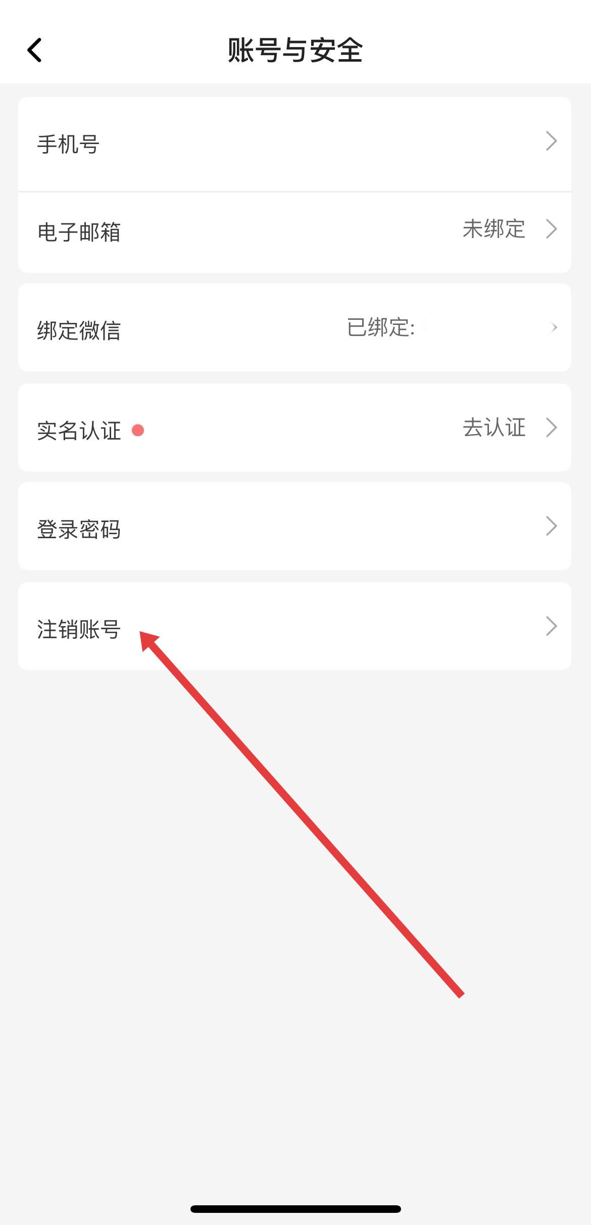 3、進(jìn)入賬號與安全頁面后,點擊底部的注銷賬號,按照頁面提示完成后續(xù)注銷操作。