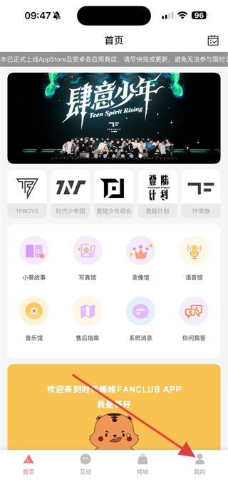 1、打開時代峰峻FANCLUB APP,點擊右下角我的,進(jìn)入個人頁面。