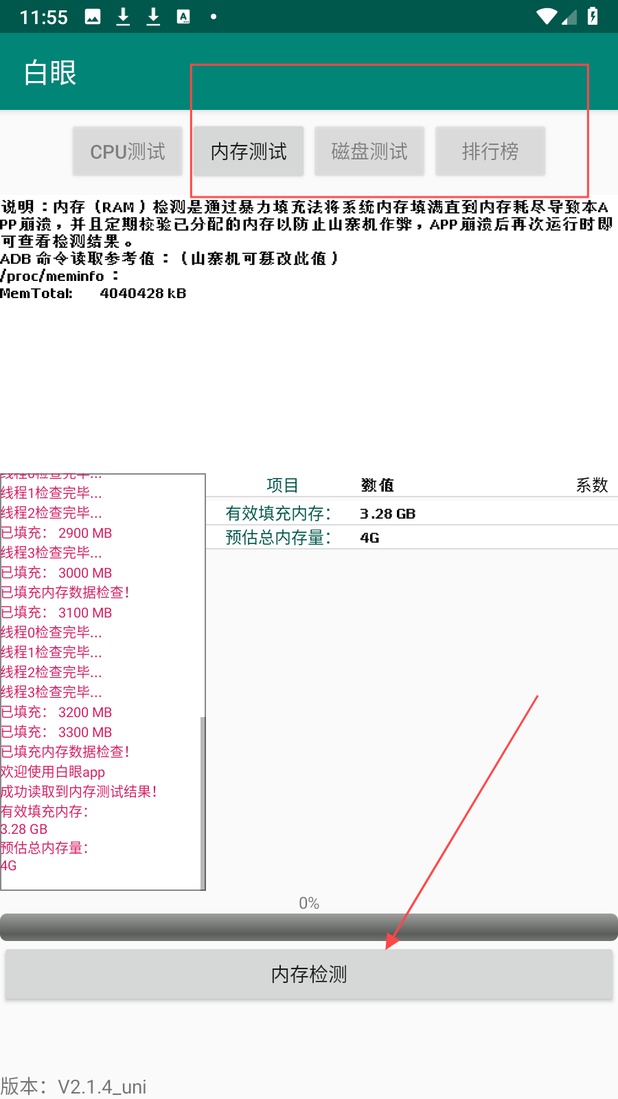 1、進(jìn)行內(nèi)存測(cè)試時(shí),點(diǎn)擊內(nèi)存測(cè)試按鈕,定期校驗(yàn)分配內(nèi)存防作弊,點(diǎn)擊內(nèi)存檢測(cè)開(kāi)始測(cè)試,過(guò)程中可在左側(cè)查看填充進(jìn)度,測(cè)試結(jié)束后能獲取有效填充內(nèi)存和預(yù)估總內(nèi)存量數(shù)據(jù)。