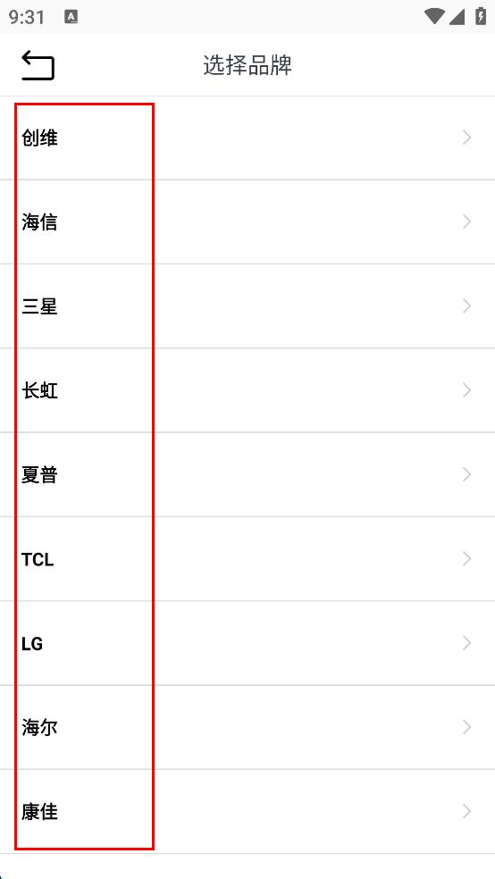 3、進(jìn)入選擇品牌頁(yè)面,選擇所需電視品牌。