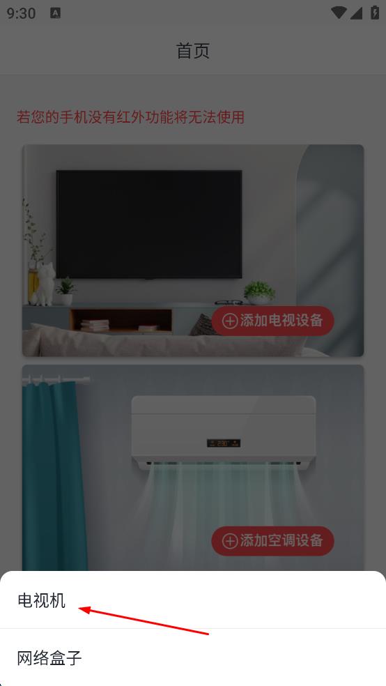 2、在彈出選項(xiàng)中,點(diǎn)擊電視機(jī)。