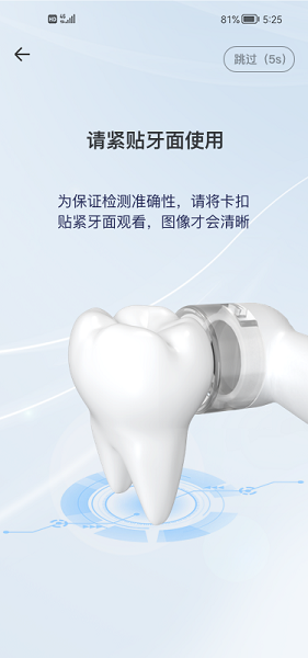 【AI光學(xué)檢測】將牙棒棒攝像頭對準(zhǔn)牙齒,通過自主研發(fā)的光學(xué)結(jié)構(gòu),可查看牙齒是否存在蛀牙、牙菌斑等口腔問題。檢測完成后,獲取全面的口腔分析報告,并可得到定制化護(hù)理方案。