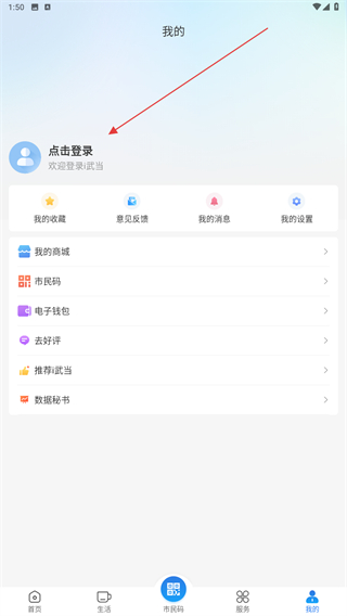 1、打開i武當(dāng)APP,進(jìn)入時(shí)點(diǎn)擊右下方我的按鈕。