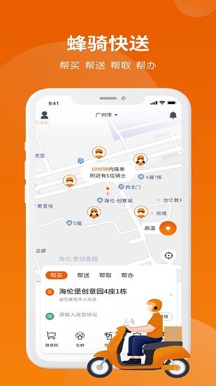 蜂騎快送是一個(gè)專業(yè)的跑腿服務(wù)App,專人直送,24小時(shí)同城配送,同城59分鐘送達(dá)。24小時(shí)待命,為您提供專業(yè)的跑腿服務(wù)。服務(wù)項(xiàng)目:幫買(mǎi)幫送,生活無(wú)憂!想您所想,極您所急,有事您動(dòng)嘴,辦事我跑腿。跑腿代辦,即時(shí)取件,準(zhǔn)時(shí)送件!蜂騎快送,開(kāi)啟您的便捷生活!