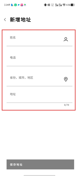 4、在新增地址頁面輸入詳細(xì)信息,完成后點(diǎn)擊保存。