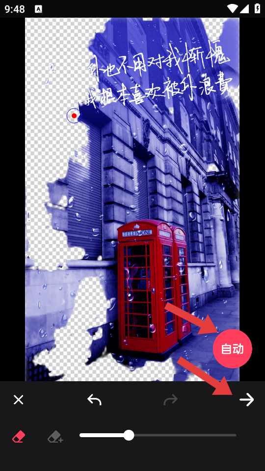 3、在摳圖編輯頁(yè)面,這里點(diǎn)擊自動(dòng)按鈕進(jìn)行摳圖,完成后點(diǎn)擊右下角圖標(biāo)。