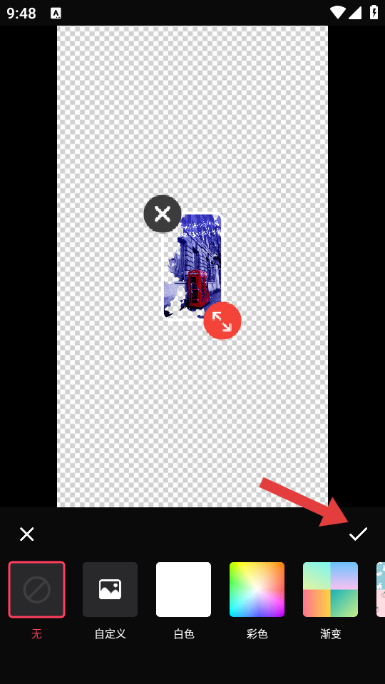 4、進(jìn)入背景設(shè)置頁(yè)面,可選擇背景樣式,完成后點(diǎn)擊對(duì)勾圖標(biāo),完成摳圖設(shè)置。