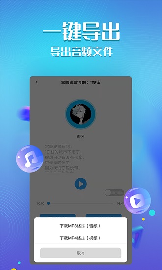 1、通過豐富的發(fā)音人選擇以及好聽的背景音樂,讓大家輕松合成語音。