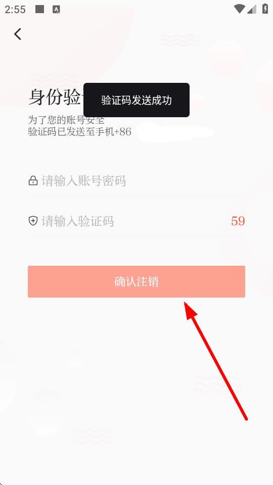 4、在身份驗(yàn)證頁面,按提示輸入賬號密碼和手機(jī)收到的驗(yàn)證碼,點(diǎn)擊確認(rèn)注銷完成賬號注銷操作。