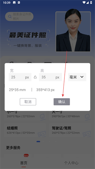 2、在彈出的窗口設(shè)置照片的寬高尺寸,然后點擊確認(rèn)。