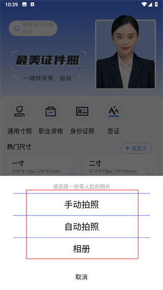 3、可選擇手動拍照,自動拍照或相冊來選取帶人臉的照片。